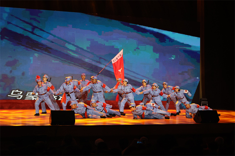 演出共分《追憶》《脊梁》《傳承》三個篇章。“拂去歲月厚厚的封塵,敞開心的世界記憶的閘門,一幅幅,一幀幀,不能忘卻的畫卷,引領著我默默地前行……”演出在《追尋》的歌聲中拉開序幕,一幅幅革命故事的畫面,展現在眼前;一曲曲動人的歌聲,扣人心弦;一幕幕感人的場景,讓人振奮。演員們用自己對英烈的敬仰之情,呈現了演出的藝術魅力和感染力。