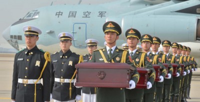 2016年3月31日上午,中韓兩國(guó)在韓國(guó)仁川國(guó)際機(jī)場(chǎng),舉行了第三批36位在韓志愿軍烈士遺骸交接儀式。民政部副部長(zhǎng)竇玉沛和韓國(guó)國(guó)防部副部長(zhǎng)黃仁武率團(tuán)出席。