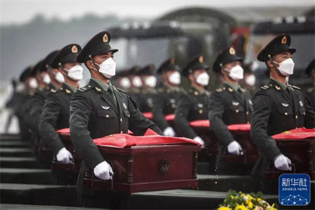 ??忠魂不泯,浩氣長存。儀式結(jié)束后,志愿軍烈士遺骸棺槨被護送前往沈陽抗美援朝烈士陵園。17日10時,第九批在韓中國人民志愿軍烈士遺骸安葬儀式將在該陵園志愿軍烈士紀念廣場舉行。2014年至2021年,已先后有825位從韓國迎接回來的志愿軍烈士在此安息。