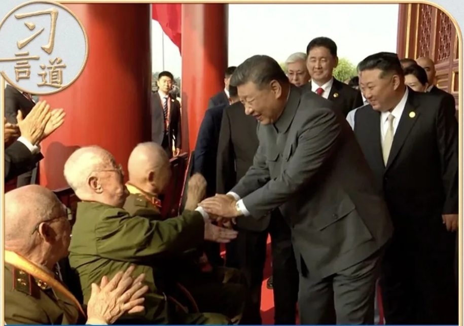 紀念中國人民抗日戰(zhàn)爭暨世界反法西斯戰(zhàn)爭勝利80周年大會開始前,習(xí)近平總書記登上天安門城樓時,同抗戰(zhàn)老戰(zhàn)士老同志代表親切握手,向他們表示崇高敬意。