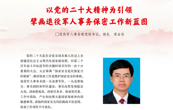 裴金佳:以黨的二十大精神為引領(lǐng)擘畫退役軍人事務(wù)保密工作新藍圖